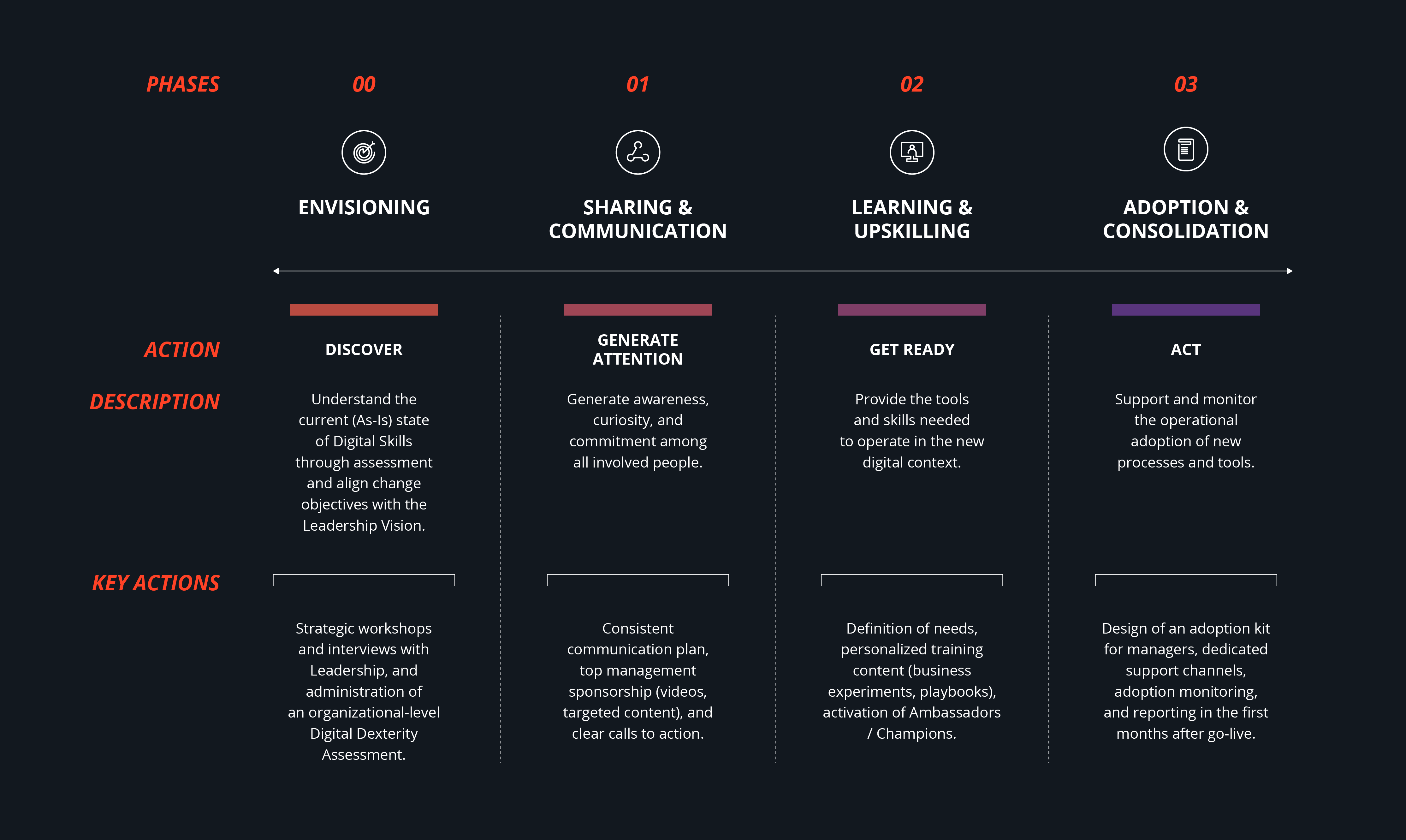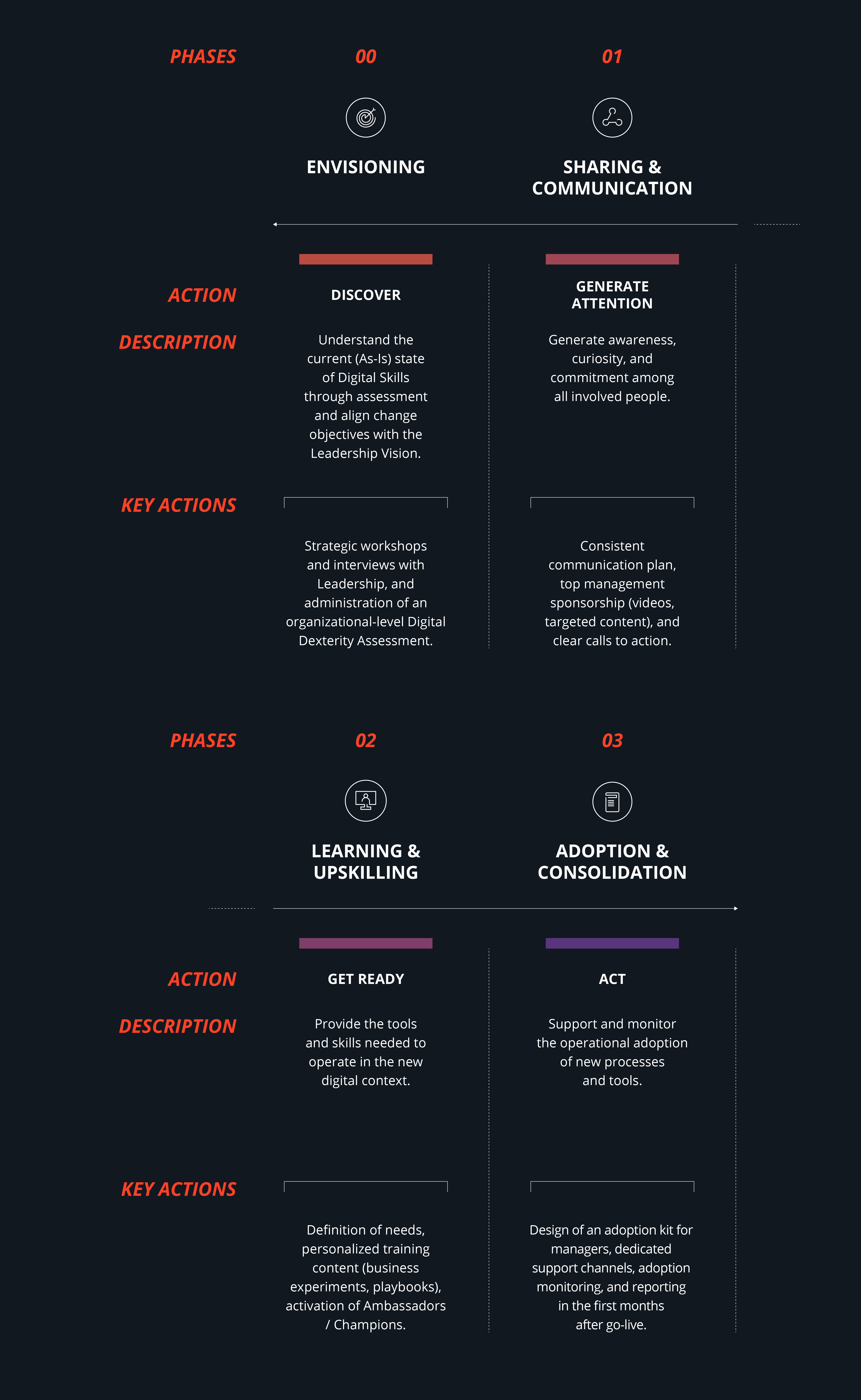 Envisioning: Understanding the current level of digital dexterity through data-driven assessments and aligning goals with leadership’s vision.